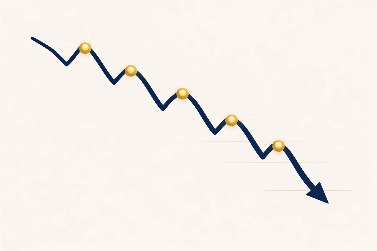 Lower Lows (LL): Each new drop goes further down than the last one.