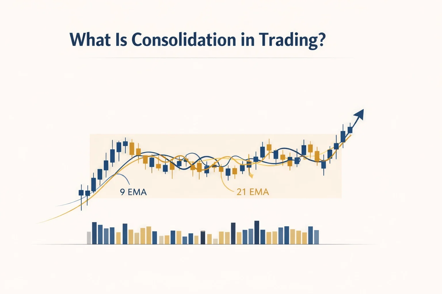 If we continue our “counting” analogy for learning the markets, consolidation is the next step. After understanding candles, EMAs, and trending markets, the next skill is recognizing when the market pauses instead of moving clearly in one direction, so we can avoid unnecessary losses.